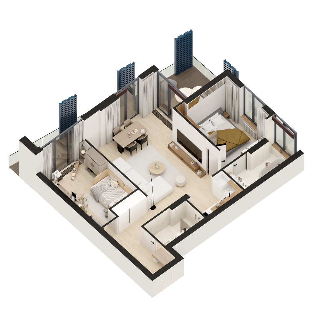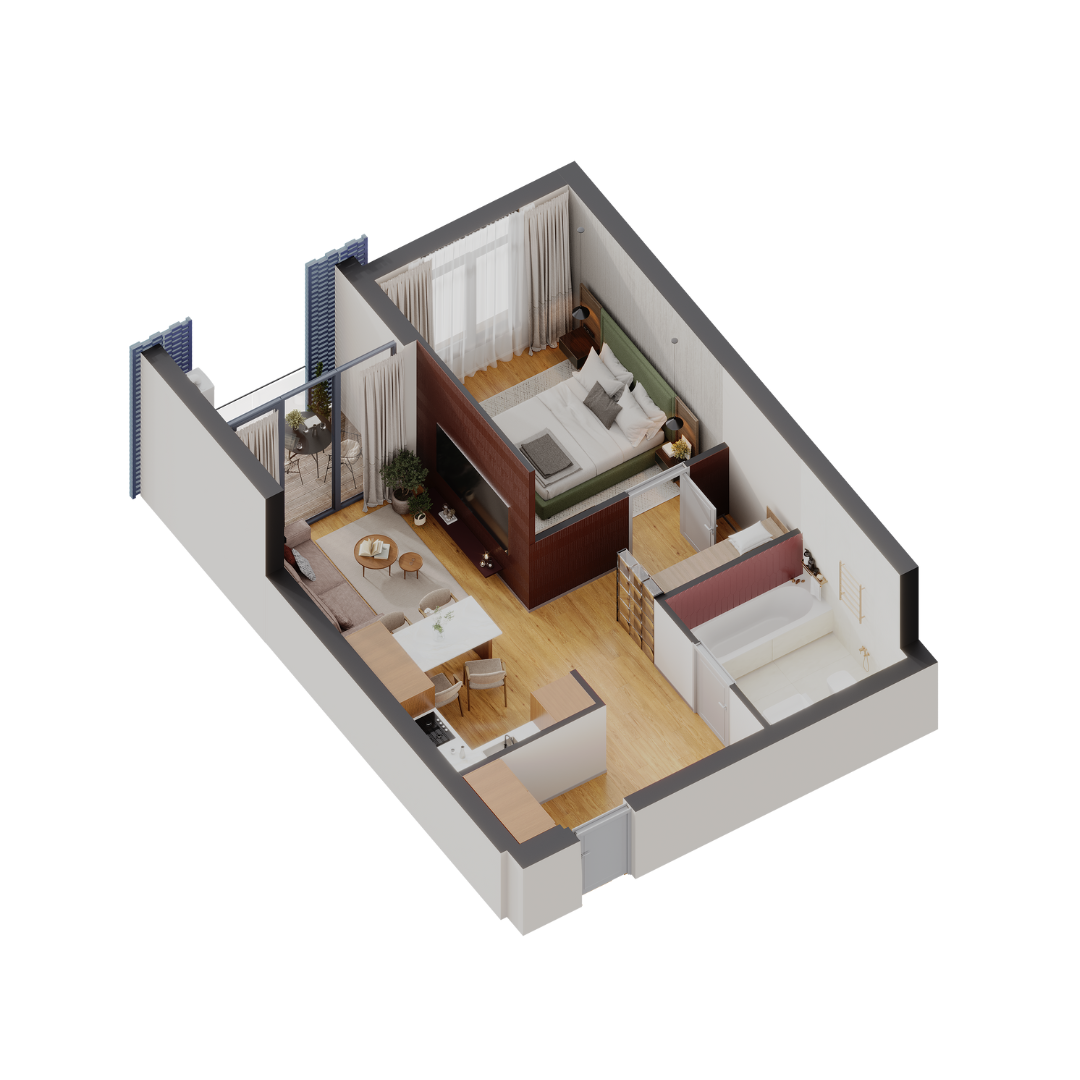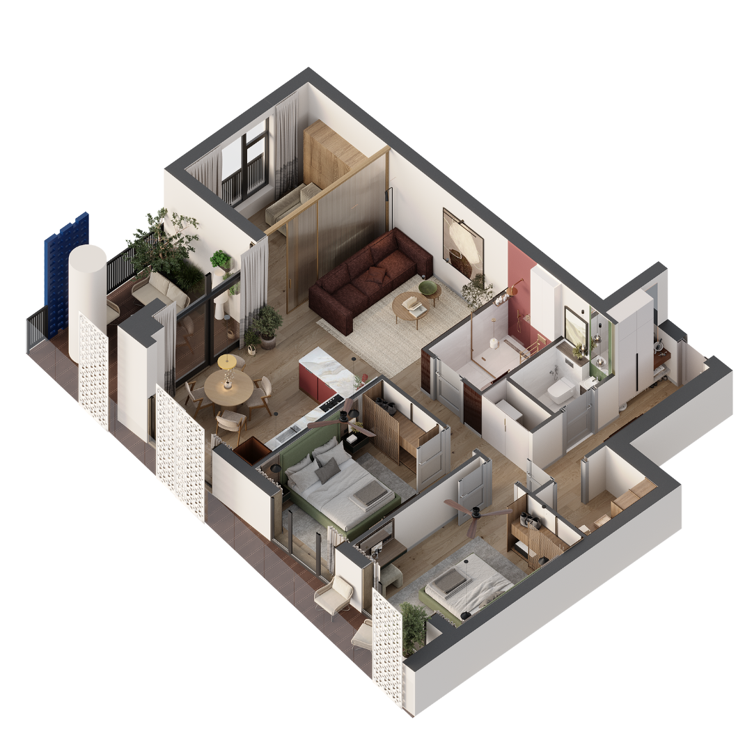 კომპლექსის გარე და შიდა ფასადები ერთმანეთთან ჰარმონიულად არის დაკავშირებული – როგორც წიგნის ყდა და მისი გვერდები,შედეგად კი იქმნება სრულყოფილი და ესთეტიკურად დახვეწილი სივრცე ცხოვრებისთვის.