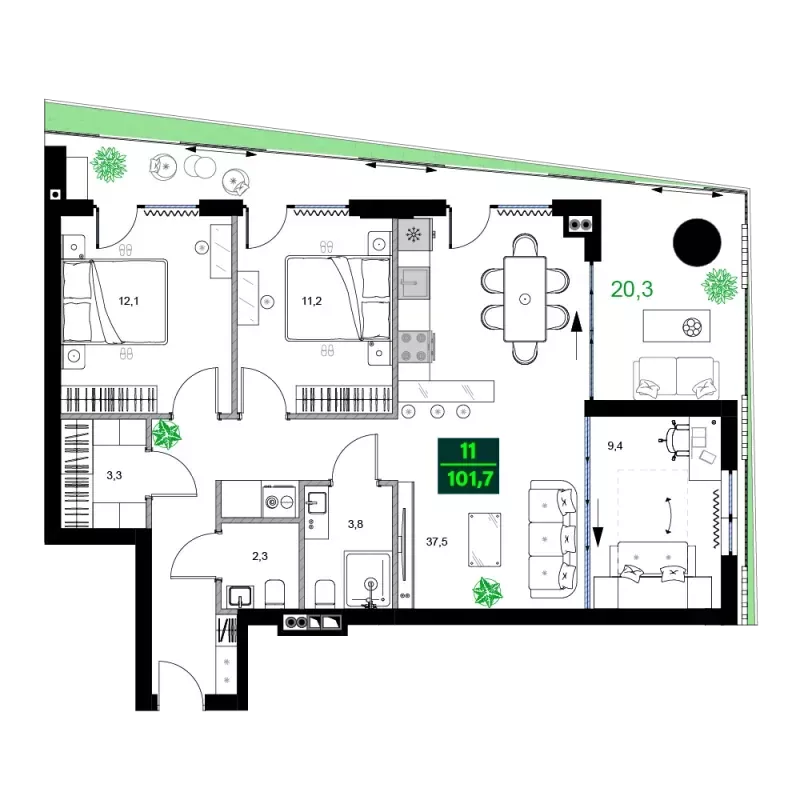 SUMMER 365-ის არქიტექტურა შექმნილია AI Architects-ის მიერ. შთამბეჭდავია არა მხოლოდ შენობის დიზაინი, არამედ თითოეული დეტალი: ერთი მხრიდან ფართო ტერასები, ხოლო მეორე მხრიდან – მწვანე ფასადები.